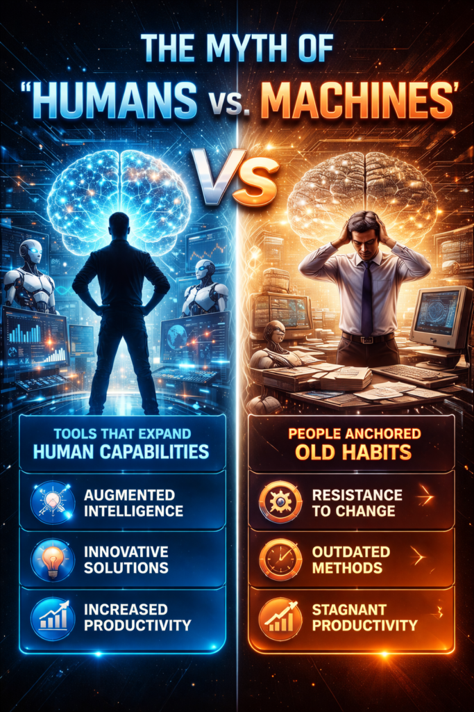 The idea that humans compete against machines has always been misleading. The real division has never been biological. It has been behavioral.